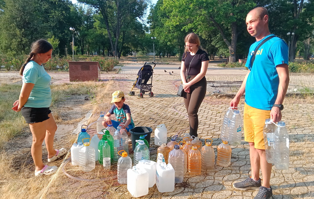 05.07.2025. Полив волонтерами саженцев деревьев в парке Кирова.