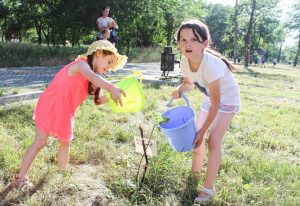 17.06.2023 — полив саженцев с пожарной машиной в парке Кирова.