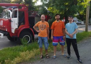 17.06.2023 — полив саженцев с пожарной машиной в парке Кирова.