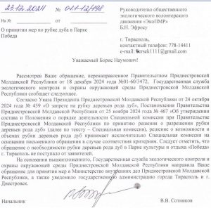 О спиле дуба в парке Победы г. Тирасполь.