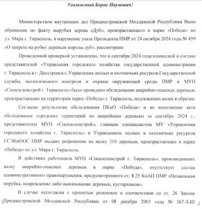 О спиле дуба в парке Победы г. Тирасполь.
