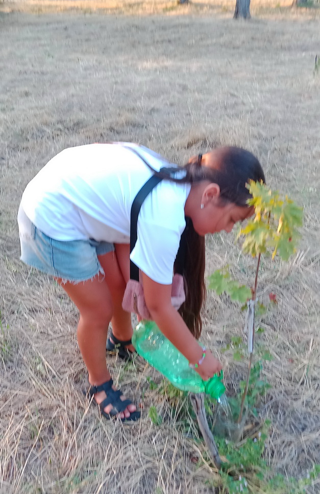 Каждую субботу мы собираемся у колокольни и роз в центре парка. Поливаем саженцы, которые мы высаживали в последние годы.