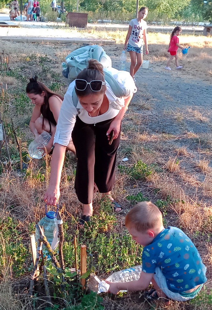 На полив ушло порядка 2 часов. В этот раз был аншлаг — примерно 50 человек, половина из них — дети. Люди приходят на акцию семьями.